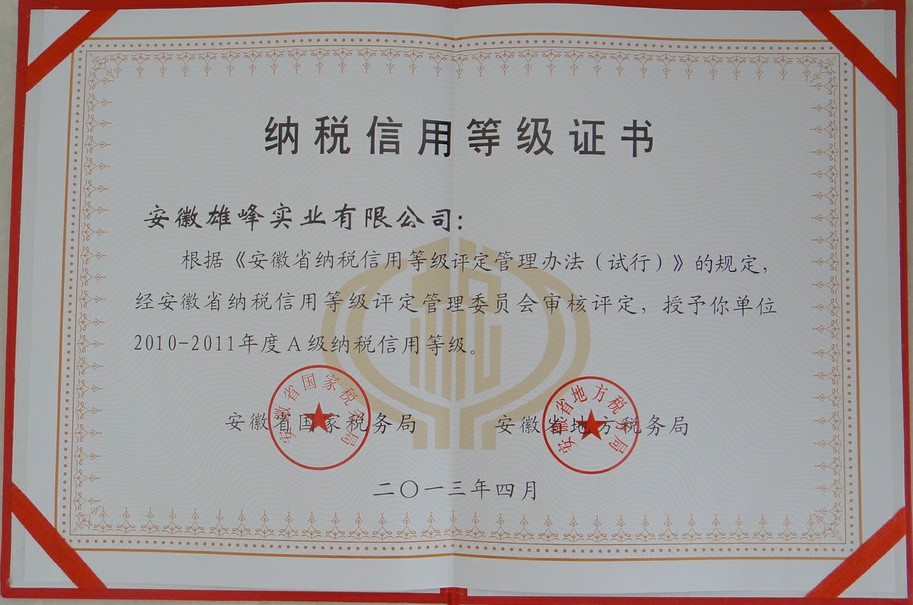2013納稅信用等級(jí)證書